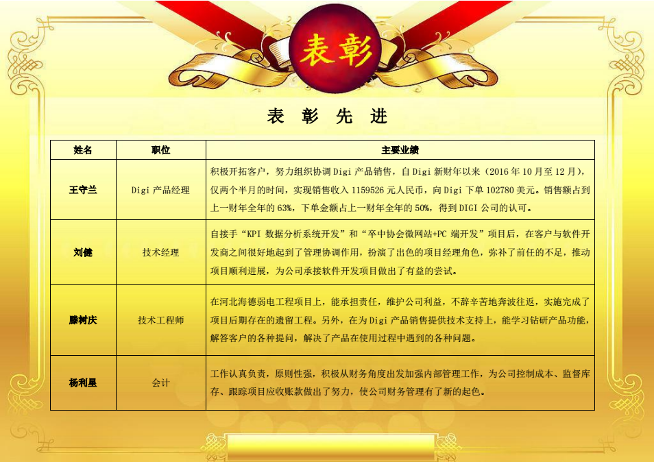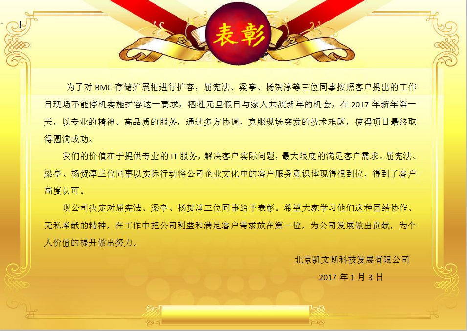 凱文斯在總結(jié)2016的同時(shí)也迎來了嶄新的2017,公司對(duì)該年度里表現(xiàn)優(yōu)異的員工予以公開展示表彰,鼓勵(lì)表現(xiàn)優(yōu)異的員工再接再厲,再創(chuàng)佳績(jī);同時(shí)也激勵(lì)著其他員工,創(chuàng)優(yōu)爭(zhēng)先,努力在提升、實(shí)現(xiàn)自身價(jià)值的同時(shí)也為公司創(chuàng)造最大價(jià)值。