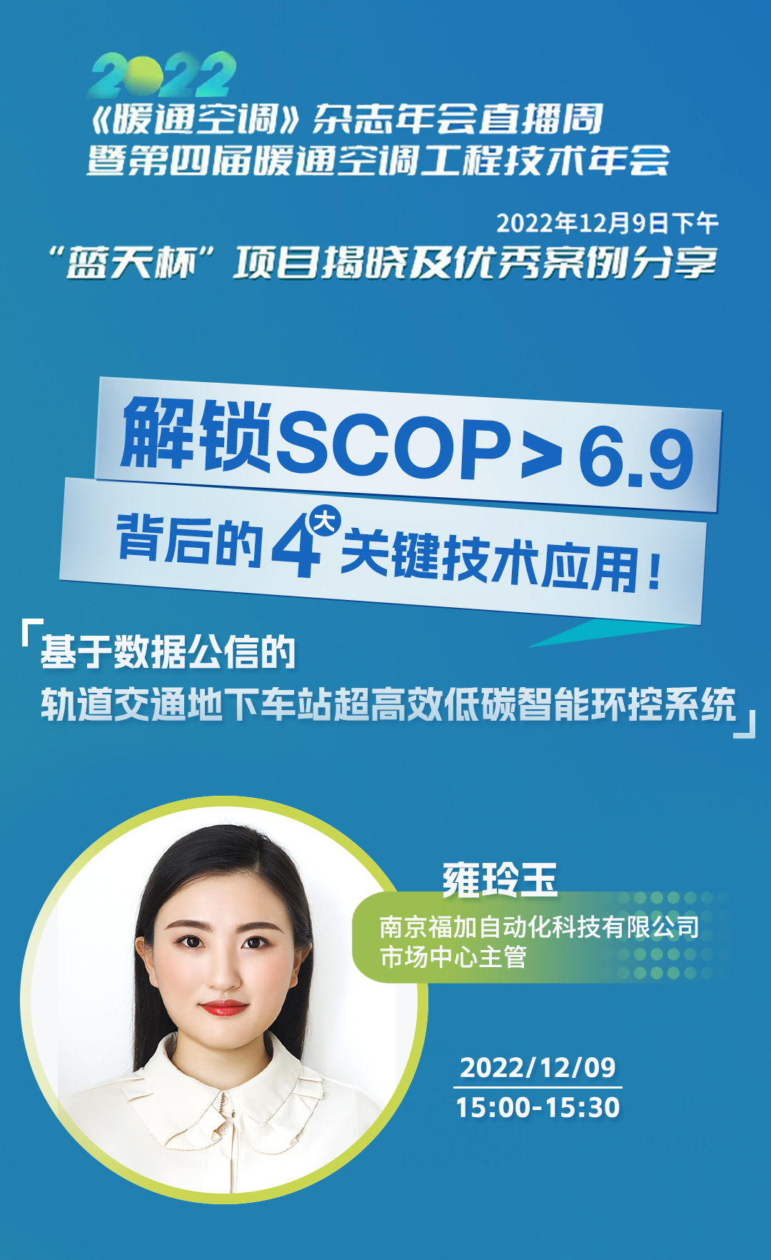 12月7日——11日,2022《暖通空調(diào)》雜志年會(huì)暨第四屆暖通空調(diào)工程技術(shù)年會(huì)于線上舉辦,會(huì)上揭曉了“藍(lán)天杯”獲獎(jiǎng)項(xiàng)目,福加實(shí)施的寧波地鐵和廣州地鐵高效系統(tǒng)節(jié)能項(xiàng)目雙獲藍(lán)天杯并受邀作優(yōu)秀案例分享。